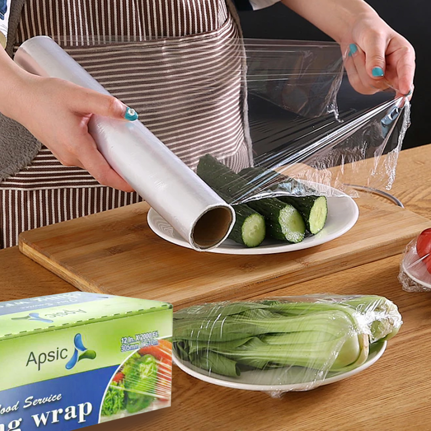 About this item Different Size: APSIC Food Service Cling Wrap have different size,12"×2000'/18"×2000'/24"×2000', professional foodservice plastic wrap for gourmet chefs in hotel, kitchen, restaurant and commercial Multipurpose Use: Keeps food fresher longer, freezer safe, can be used to wrap meat, fruits, vegetables Keep Foods Fresh: The Plastic Food Wrap made from extra-strong plastic wrap to seal in freshness, to keep foods fresh for a longer time Tears Off Easy: The Cling Wrap With Serrated Cutter can be torn away from the dispenser with ease Saving You Time: The plastic wrap with serrated cutter, allows you to easily use and cut as much wrap as you need, saving you time and effort Quantity