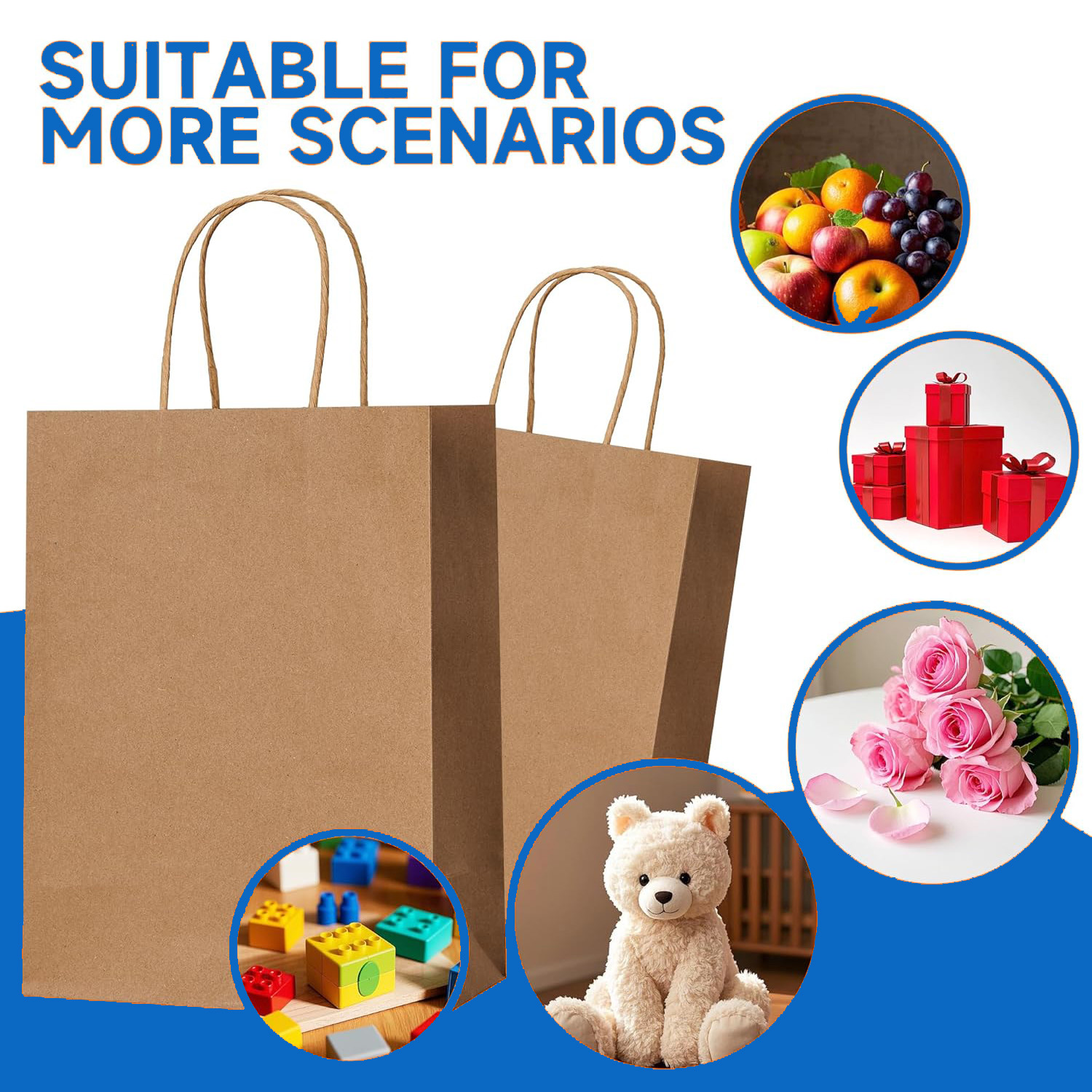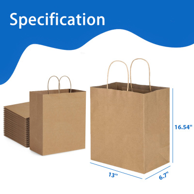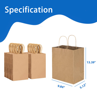 About these kraft paper bags: They are perfect as Valentine's Day gift bags, shopping bags, holiday gift bags, party favor bags, retail bags, merchandise bags, and wedding welcome bags. Sturdy and Durable: These gift bags are made of high-quality 110 GSM kraft paper, supporting approximately 100-110 grams; the handles are fixed to the paper bags with professional-grade adhesive, and the bottom is reinforced to enhance stability and durability. Eco-Friendly: These brown paper bags are made from recyclable materials, meet FSC standards, and are suitable for wholesale or retail use; if there is a slight smell, it is just the natural scent of the paper and nothing to worry about. Quantity
