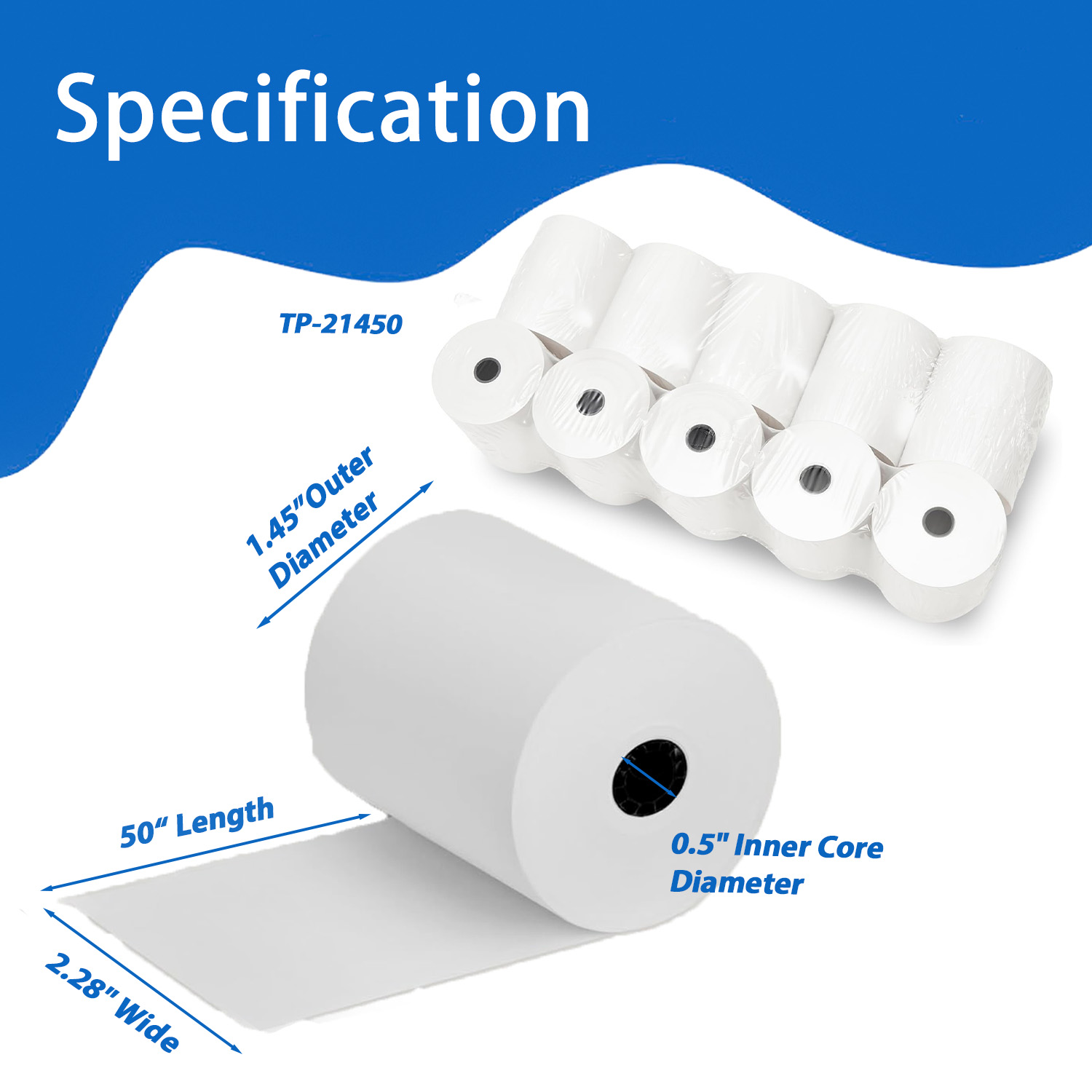 About this item Unbeatable Size Variety: With 3 1/8" x 230ft, 2 1/4" x 50ft, and 2 1/4" x 165ft, our thermal paper rolls are tailor-made to fit any thermal printer in your business, be it a bustling restaurant's POS or a small shop's cash register Safety and Durability at its Best: With a high-sensitivity thermal coating, our paper guarantees sharp and clear prints. The BPA-free not only meets strict safety standards but also resists fading, maintaining the legibility of printed receipts Commercial Efficiency Packaging: The 100-roll packs are perfect for high-volume users such as convenience stores, cafes, and supermarkets, reducing the frequency of restocking Rigorously Tested for Compatibility: Work seamlessly with most major printer, ensuring consistent printing during peak business hou Quantity